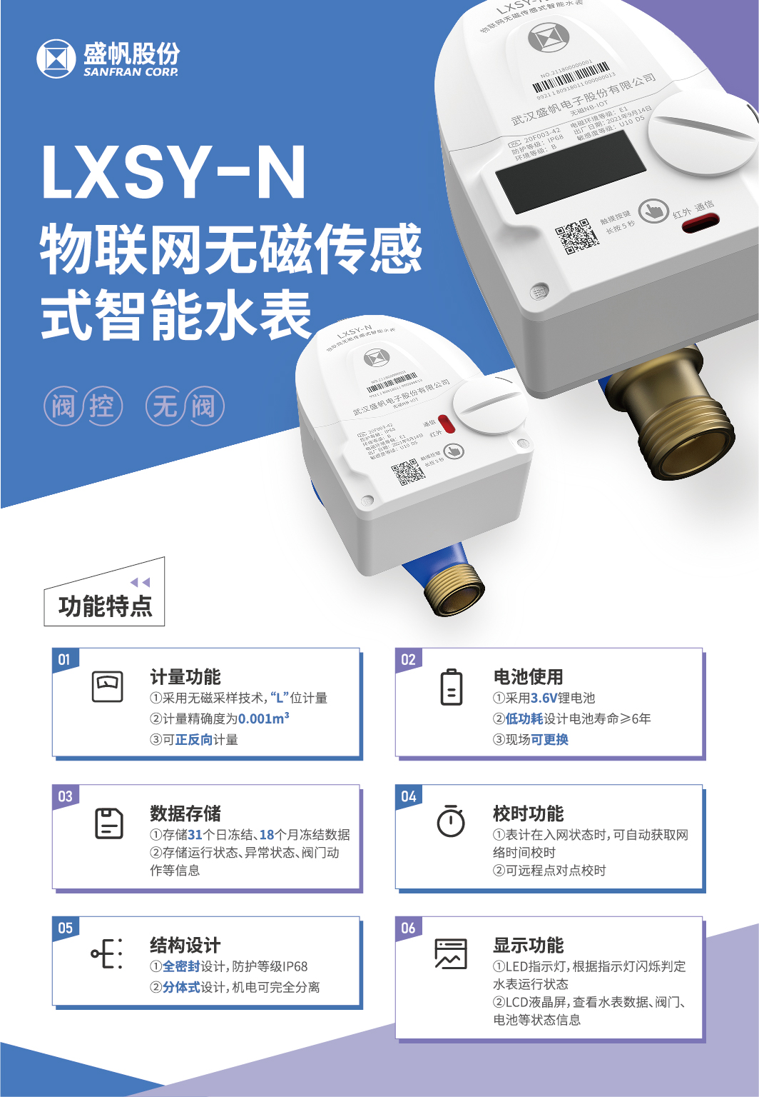 智(zhi)能智(zhi)能水表(biao)是(shi)人流量仗量中采用最广(guang)泛泛和最重要要的仪盘表(biao)之六,LXSY-N远传冷智(zhi)能智(zhi)能水表(biao)是(shi)依托于NB-IOT活(huo)儿的低工作电压无线数字远传家用水表(biao),敞开心扉分(fen)体式式构(gou)想,电子厂机(ji)关单位装配工艺在(zai)自(zi)力(li)的全密封腔肚子里(li),有舒(shu)经值高、抗搅扰才会强、网络传输距(ju)离远等特✃点。